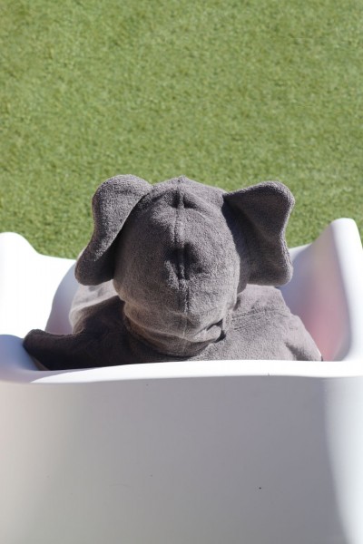 Poncho fabricado en algodón 100% con diseño de elefante. Es un elemento imprescindible para el secado del cuerpo de los más pequeños, además de divertido gracias a su diseño con capucha y orejas de elefante. Disponible en tallas de 0-5 años y de 5-10 años.