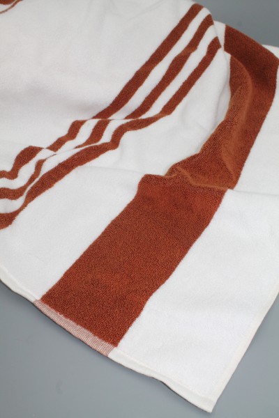 La toalla de piscina con rayas en color marrón tiene máxima suavidad. No se encoge y cuenta con una confección especial como cada uno de nuestros productos. Su color Indanthren tiene máxima solidez y le aportara una resistencia mayor del color al degradado diario y a los lavados.