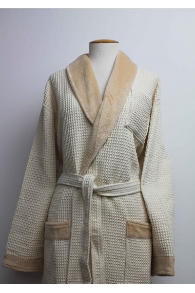 Aprovecha esta ocasión de adquirir el albornoz ref. Lainate con un 40% de descuento. Albornoz confeccionado en nido de abeja color beige con apliques en rizo tundido en cuello, bolsillos y puños. La función principal del albornoz Nido de abeja es la de secarnos después de haber tomado una revitalizante ducha o un relajante baño. El albornoz ayuda a mejorar el secado y aumentar el confort a la salida del baño.