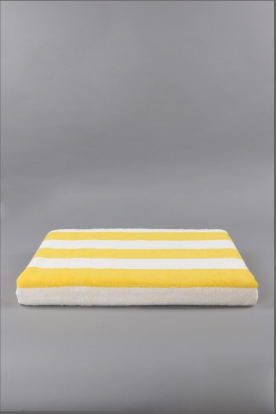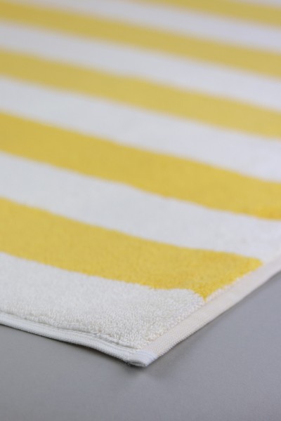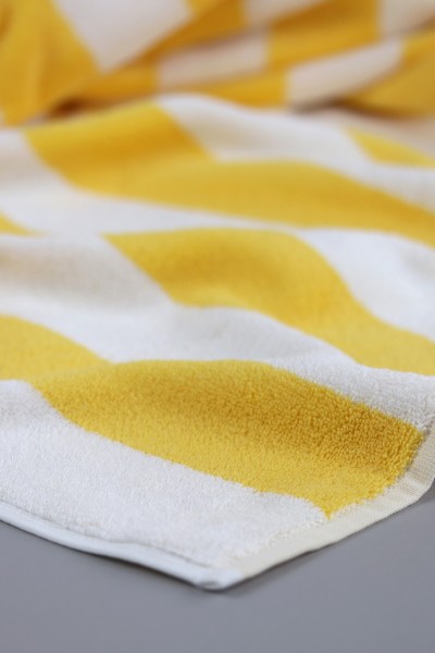 La toalla de piscina Toscana con suavidad excepcional gracias al algodón 100% extra, te transporta a la zona de interior más bonita de Italia, gracias a su diseño de rayas amarillas y blancas. Su color a través de la técnica Indanthren tiene máxima solidez y asegura que el color aguante durante muchos más lavados, ya que es un tipo de tinte que se emplea en el ámbito profesional, donde los lavados son más agresivos con los textiles.