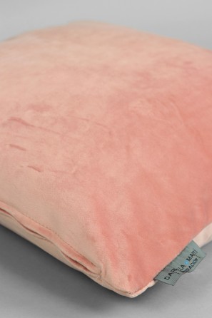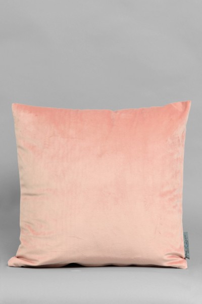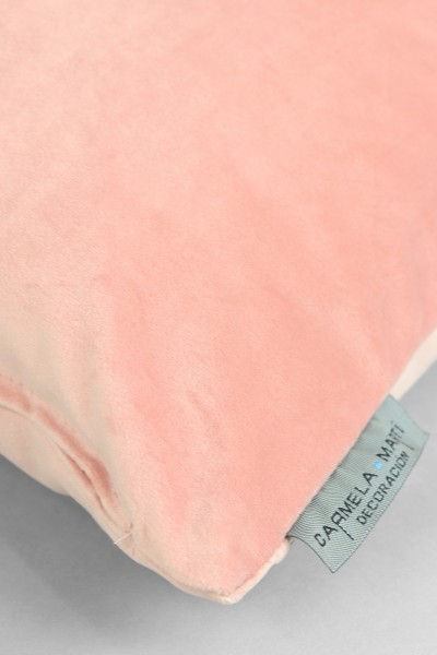 Cojín decorativo de un suave terciopelo rosa palo con cierre cremallera. Medida cuadrada 40x40cm, con cierre de cremallera. Incluye relleno.