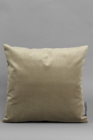 Cojín decorativo Velvet en suave terciopelo color beige capuccino. Medida cuadrada 40x40cm, con cierre cremallera. Incluye relleno.